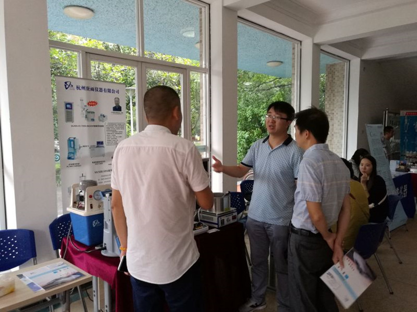 浙江省大學(xué)生化學(xué)競賽及化學(xué)化工教學(xué)中心主任聯(lián)席會在浙江師范大學(xué)舉行,杭州庚雨儀器有限公司應(yīng)邀到會,組委會提供了展臺,讓我們產(chǎn)品近距離的與各位老師互動,公司郭經(jīng)理與參觀老師分享我公司的快速發(fā)展和產(chǎn)品檔次的提升,得到了大家的支持和認(rèn)可。