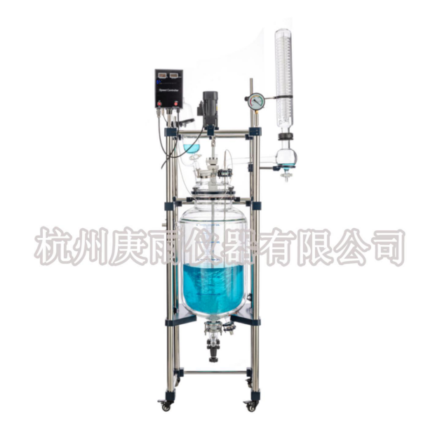 本機(jī)具有電動(dòng)恒速攪拌系統(tǒng)、冷凝、滴加系統(tǒng),釜體夾層需外接加熱或制冷的循環(huán)設(shè)備。在攪拌物料的同時(shí),通過夾層注入循環(huán)的熱溶液或冷卻液,對(duì)釜內(nèi)的物料進(jìn)行恒溫的加熱或制冷。物料進(jìn)行加熱反應(yīng)時(shí),在真空條件下可以提高蒸發(fā)效率(需連接真空裝置),溶媒蒸汽經(jīng)玻璃冷凝盤管時(shí)冷卻成液體(需連接冷卻裝置),可回流到釜內(nèi),也可通過回流彎頭下部閥門進(jìn)行回收。反應(yīng)完畢,物料可從釜底的側(cè)出料口放出。