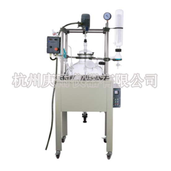本機(jī)具有電動(dòng)恒速攪拌系統(tǒng)、冷凝、滴加系統(tǒng)、加熱浴鍋。在攪拌物料的同時(shí),浴鍋對釜內(nèi)物料進(jìn)行加熱,在真空條件下可以提高蒸發(fā)效率(需連接真空裝置),溶媒蒸汽經(jīng)玻璃冷凝盤管時(shí)冷卻成液體(需連接冷卻裝置),可回流到釜內(nèi),也可通過回流彎頭下部閥門進(jìn)行回收。反應(yīng)完畢,物料可從釜底的側(cè)出料口放出。