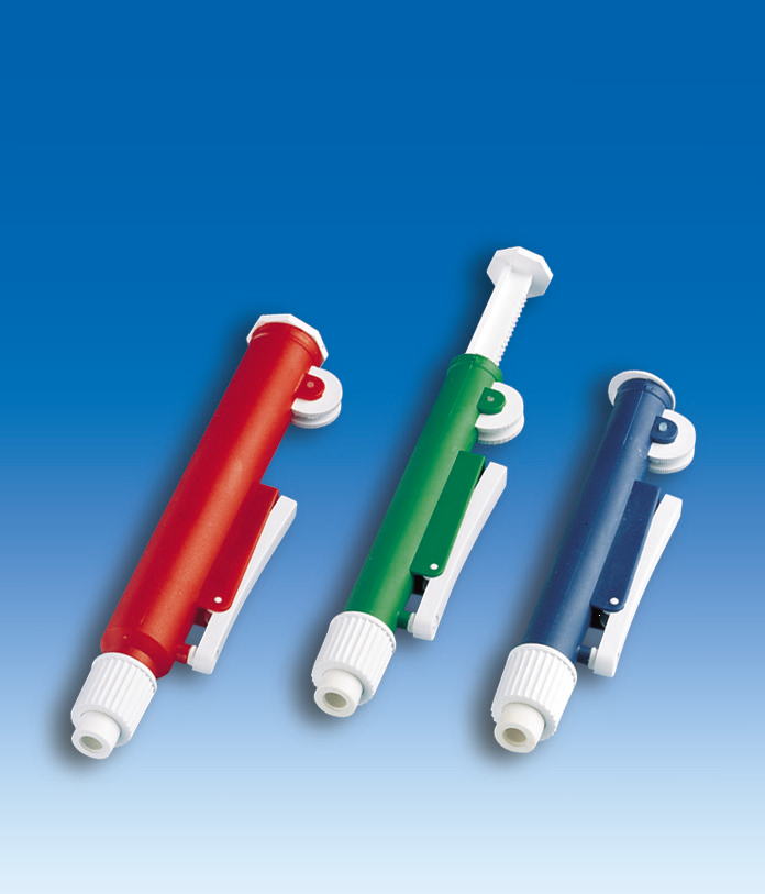 用于液體移取,適合所有玻璃和塑料移液管。緩慢旋轉(zhuǎn)控制輪使液體滴入移液管。無(wú)需使活塞歸位,按下空氣放空閥即可放空移液管。