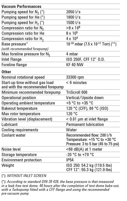 Turbo-V 2300 TwisTorr 泵技術(shù)規(guī)格
