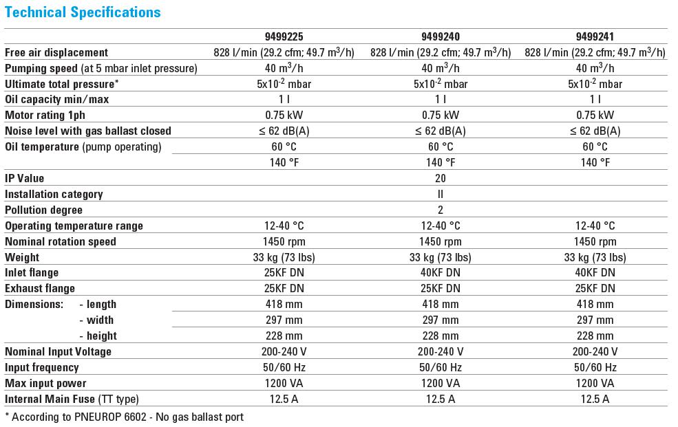 單級旋片泵泵容量較高,尺寸較小。適用于壓力不超過 10 Torr 時的穩(wěn)定和高氣體通量條件。 |