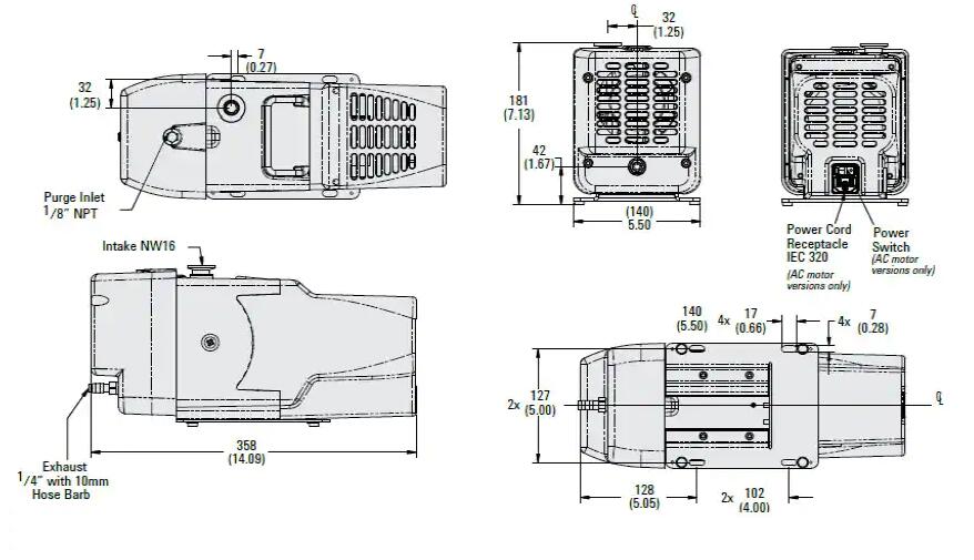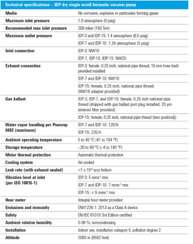 2.0 x 10-2 mbar 1.5 x 10-2 Torr | 0.5 HP (350 W)/100-127; 200-240 VAC |