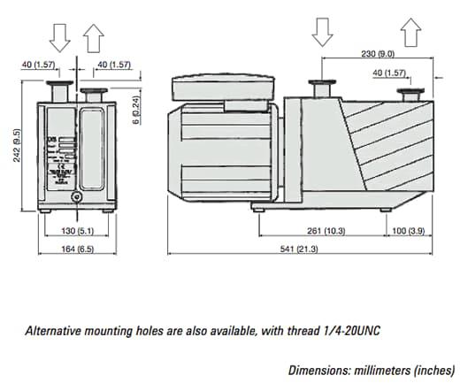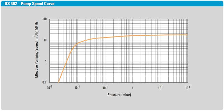 Two-stage rotary vane pump provides a pumping speed of 410 liters per minute, low noise and minimal backstreaming at low pressure. |