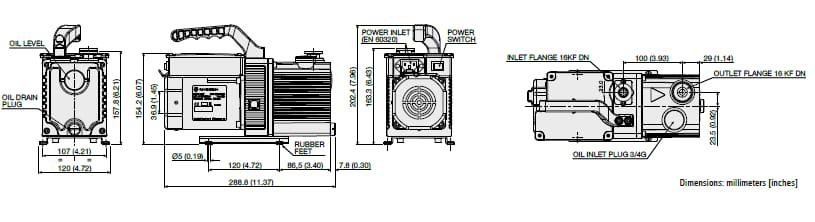 The Agilent DS40M 2m3/hr Rotary Vane Pump is compact, quiet, consumes power frugally, and has a magnetic coupling to eliminate oil leaks. |